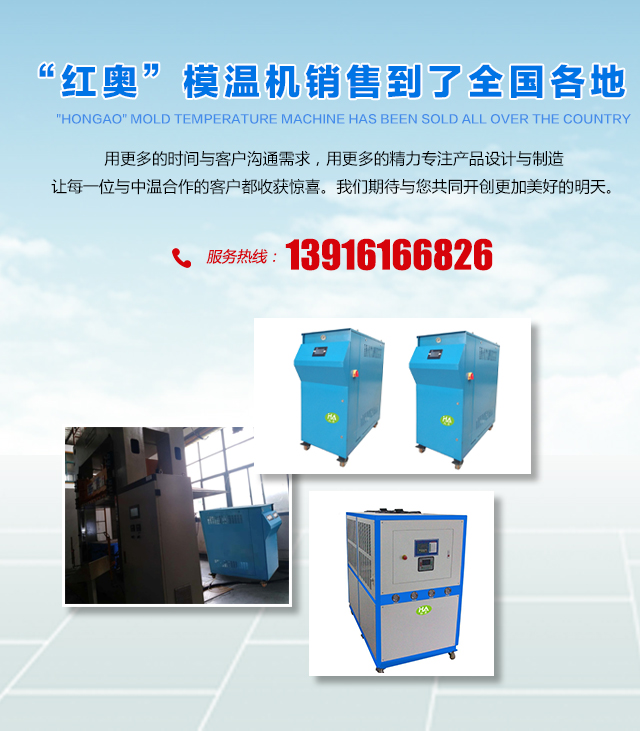 公司旗下?lián)碛屑t奧品牌模溫機,公司設(shè)立有研發(fā)部,銷售部,制造部,售后服務(wù)部,公司主要產(chǎn)品由:油溫機、水溫機,非標(biāo)定制模溫機,冷水機,冰水機、點冷機、冷熱一體機,導(dǎo)熱油加熱器、電加熱導(dǎo)熱油爐及溫度控制系統(tǒng)的定制和改造升級。產(chǎn)品涵蓋了壓鑄,注塑,吹塑,擠出生產(chǎn)線,高分子成型,工業(yè)干燥,薄膜加工,金屬板制造,印刷,食品,醫(yī)療,反應(yīng)釜等行業(yè)。十多年來,在全體同仁的不懈努力下,“紅奧”模溫機銷售到了全國各地,得到了廣大客戶和社會各界的認(rèn)可與支持...